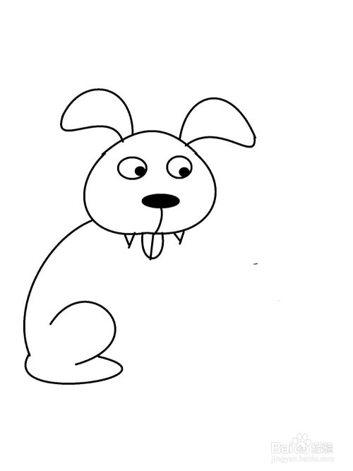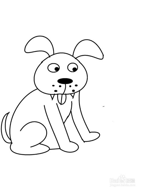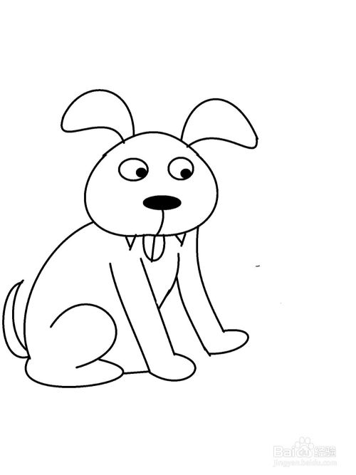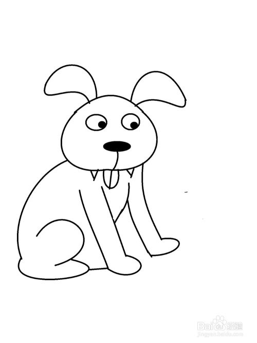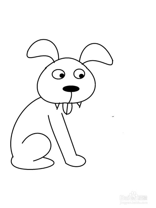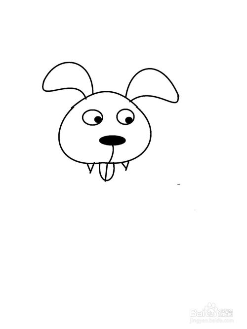 1 画出小狗头部轮廓再画出眼睛鼻子和嘴巴。