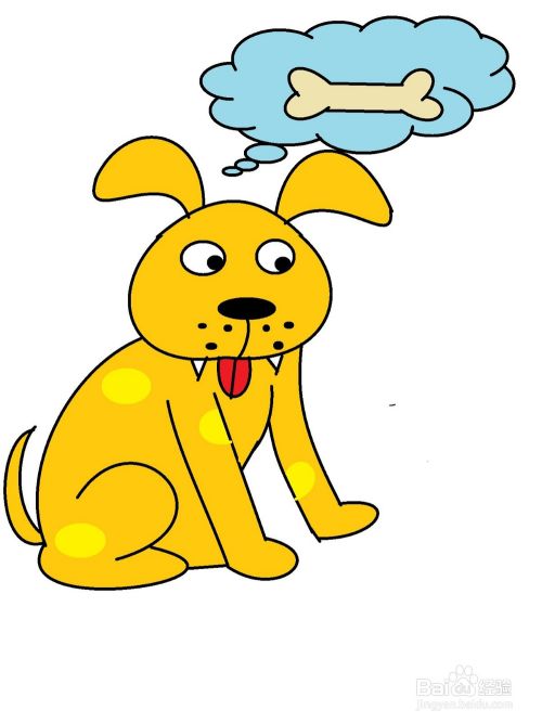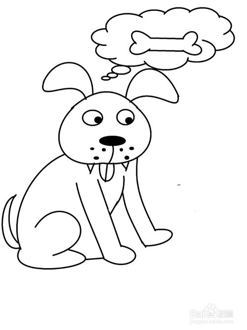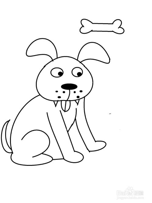 5 画好尾巴,把骨头画出来,最后涂上颜色即可。