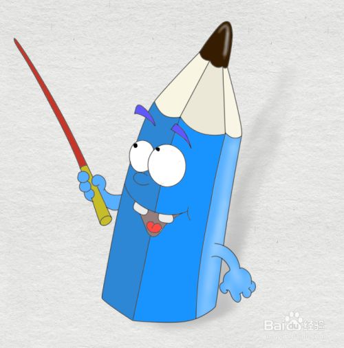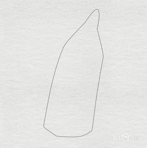 用曲线画出铅笔的外形轮廓,笔尖向上,笔头朝下,略弯,用作卡通形象的身体。