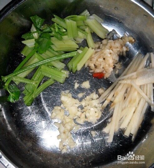 放入适量的油到锅里烧热后,加入一碗水和适量盐的烧开。