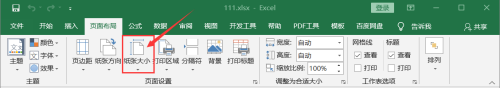在页面布局的菜单栏里,点击“纸张大小”,如下图所示。