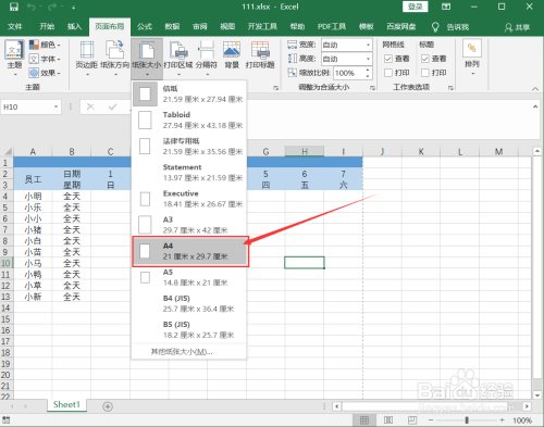 最后在纸张大小的选项中点击“A4”,即可完成,如下图所示。
