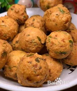 然后用虎口挤出丸子,七成油温下锅炸,炸至金黄即可享用