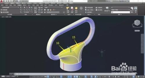 把辅助曲面隐藏,并用“三维镜像”命令把放样曲面15的对称部分进行镜像,生成曲面16。↓