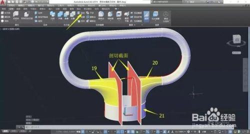 以曲面17、18作为剖切截面,对曲面19、20、21进行剖切,并删除中间部分,如图所示。↓