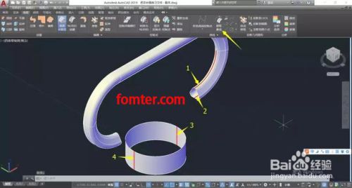 打开提供的源文件,执行“提取素线”命令,在把手右侧的两个曲面中点处提取出素线1、2,以及圆柱曲面的左右位置提取出素线3、4。↓