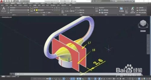 在底部绘制两段对称直线,距离为2.6mm,并进行拉伸,生成曲面17、18。↓