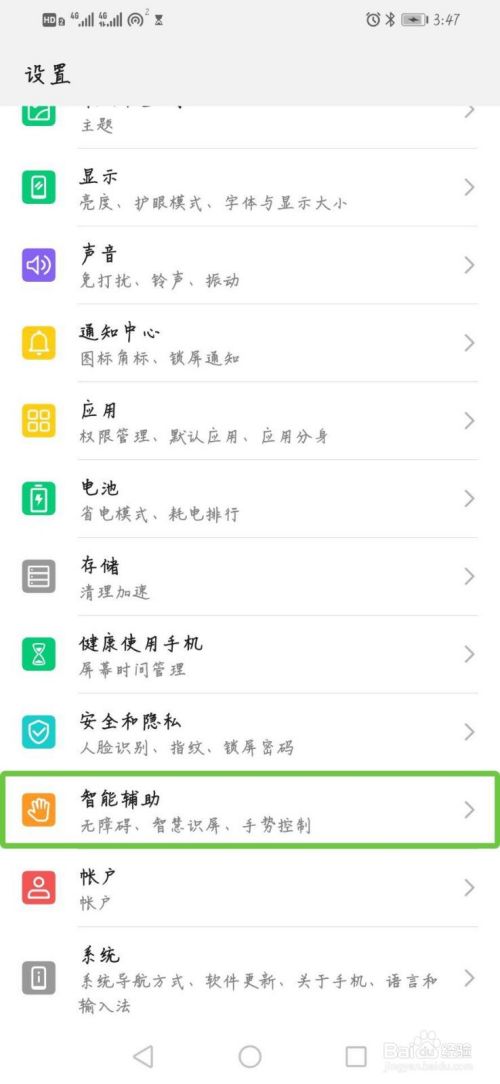 进入“设置”后,双指下滑,找到”智能辅助“并双击进入