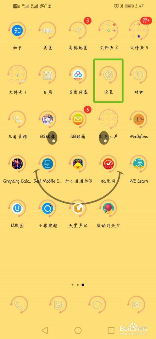 两个手指滑动到“设置”所在的桌面,两次点击“设置”