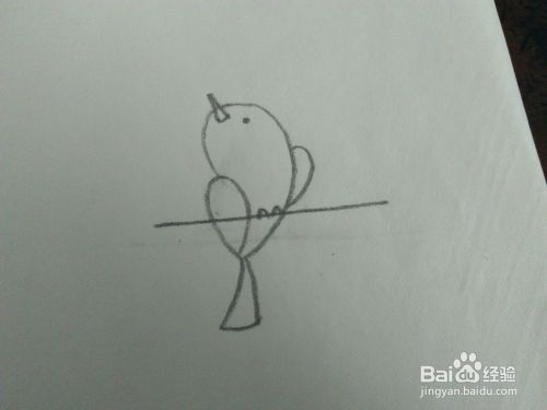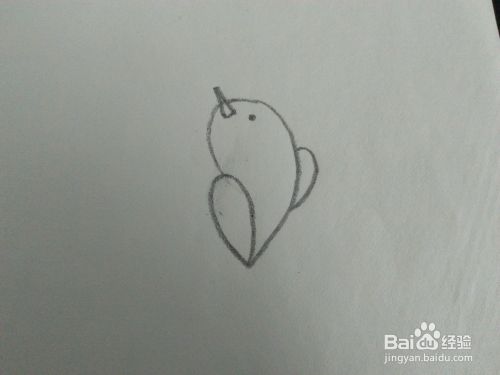 再把小鸟的尖尖嘴画出来,还有一个黑点样子的眼睛。