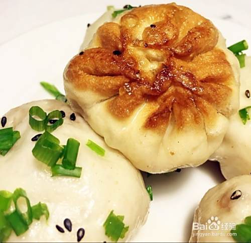 “形态美”:生煎包皮薄如纸,晶莹剔透,馅大料足,褶多而不破,形如含苞之菊,好吃又好看。