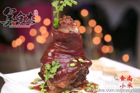 1洗净肘子、用小刀把肘子上的细毛脏泥刮净(这步相当关键,即使买来加工好的也一定要刮,刮完您会发现上面很脏的)