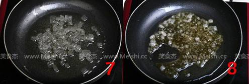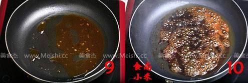8将冰糖变成琥珀色,用竹铲子慢慢搅拌