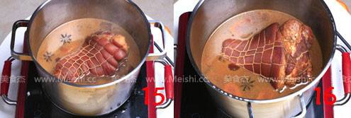 17、将肘子在大锅中翻个,并用勺子不断浇汤,保持皮肉一致
