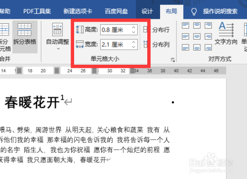 就能看到选中的表格根据自己设置的高度和宽度调整好表格大小了