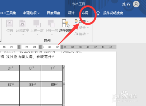 点击菜单栏中表格工具下的“布局”