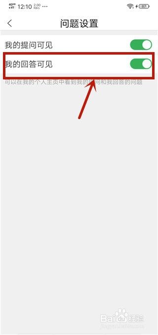 5、当我的回答可见按钮变成灰色,这是就可以让我的回答在个人主页不可见