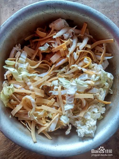 家拌凉菜干豆腐拌白菜丝,清淡可口。