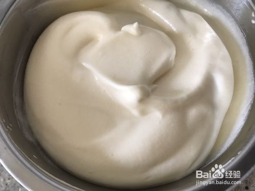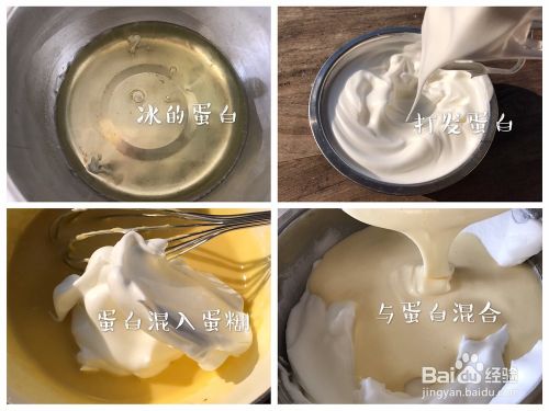 冷冻蛋白质,三次加糖,打中性起泡,提钩状态大,过不去太猛,容易开裂。将蛋清分三次加入蛋黄酱中,搅拌均匀。