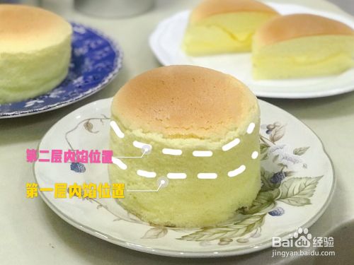 内部填充分为两层。第一层放在蛋糕糊的1/2处,第二层放在内馅的1/5处。烘烤后,填充物将分布在中间。