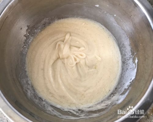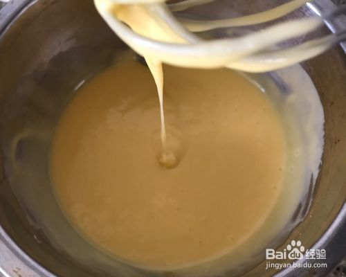 搅拌均匀的蛋糕糊细腻,不易消泡。