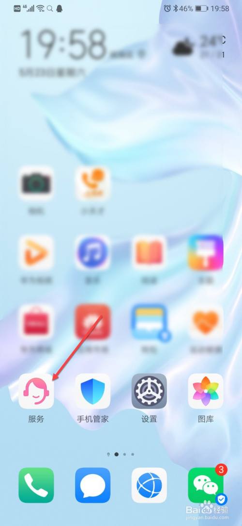 打开手机,点击服务。