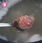 8分别下入每一整好型的丸子,我是整一个丸子下一个丸子,把所有的肉馅都整成丸子小煮一会。