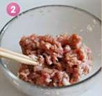 4用小号的勺子挖一小块肉馅,在碗中整好型。