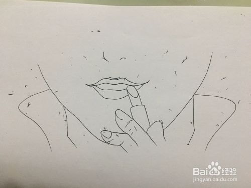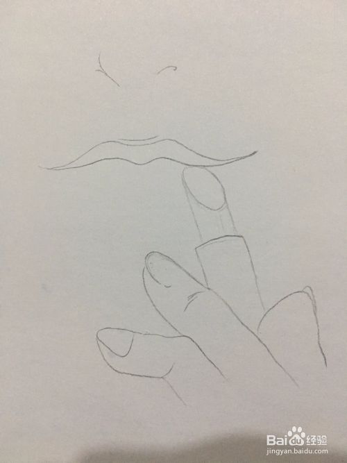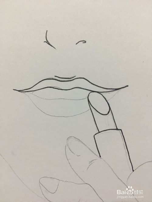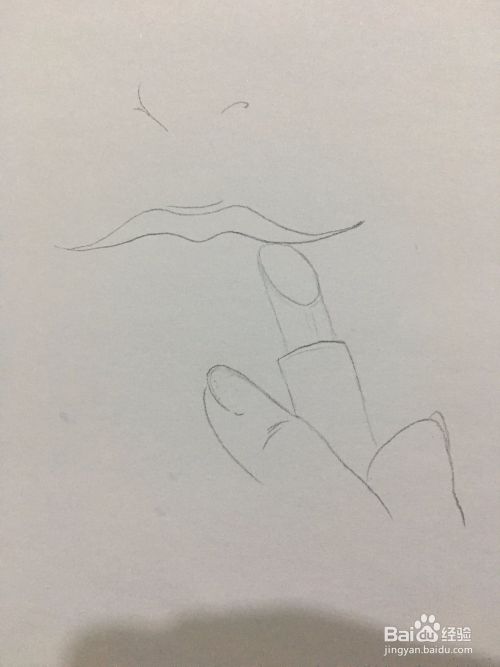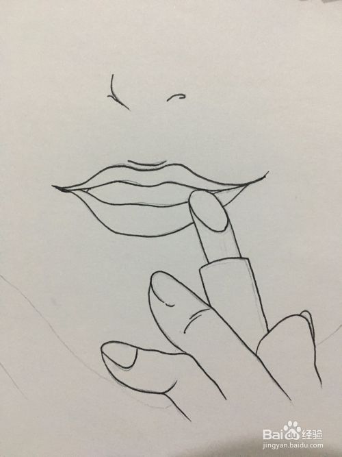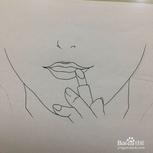 今天小编示范画一个露着嘴唇的女人手拿着口红想涂嘴唇 。
