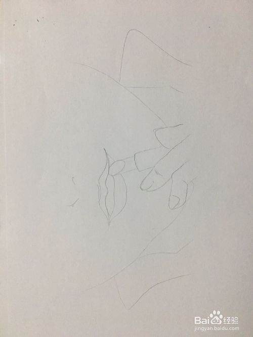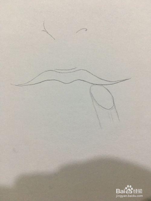 使用铅笔画女人的露出的鼻孔和嘴唇,