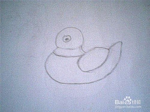 用一条略微弯曲的线来连接鸭子的头部,