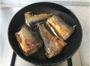 不粘锅放入豆油,把鱼两面煎到金黄