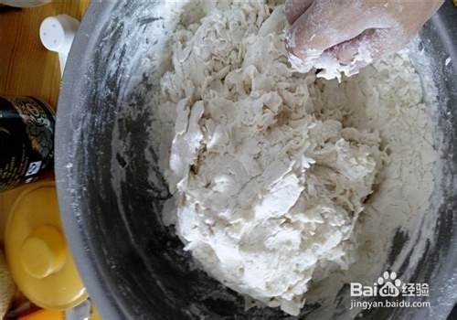 先和面,把酵母粉倒入盆中,加少量温水搅拌均匀。后把面粉倒入盆中,边往里加水边和面,水不要一直加太多,水多了面和不好。
