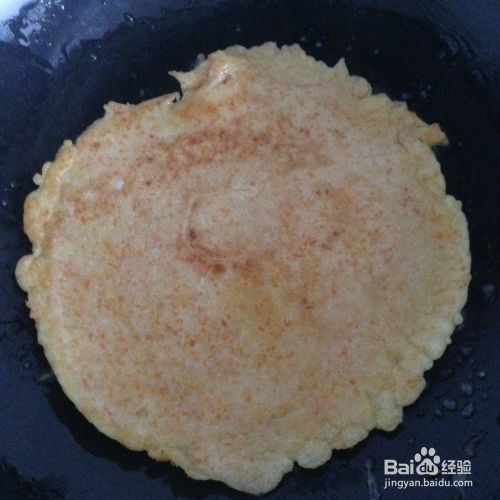 将面糊倒进锅里摊匀,小火加热轻轻晃动锅,底面成型后慢慢翻过来,两面变黄后就熟了。盛出即可!