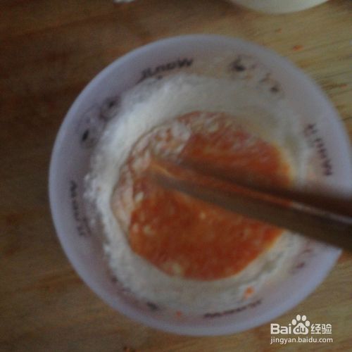 继续一边搅动一边将面粉倒进碗里,到碗里的面粉成粘稠的糊状即可。再少放一点盐。