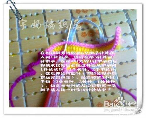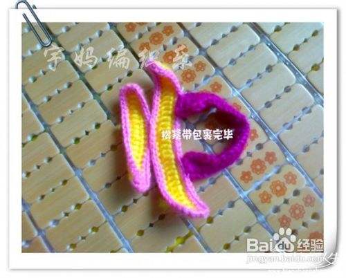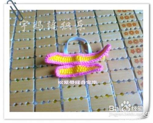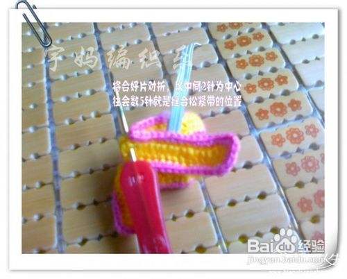 3鞋面钩完之后就该钩带松紧带的后跟带了,这一步比较麻烦的就是松紧带与鞋面连接处的钩织。