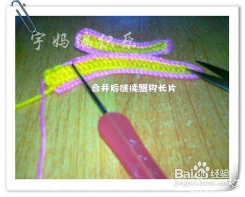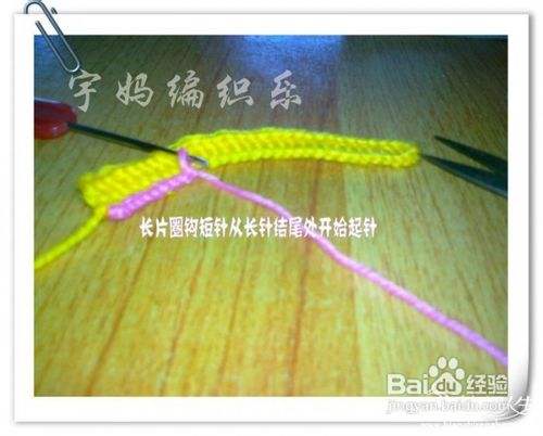 2然后开始钩鞋面,鞋面是用两个长条拼接起来的,具体方法如下: