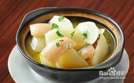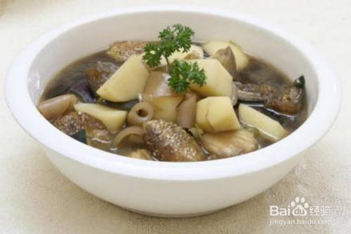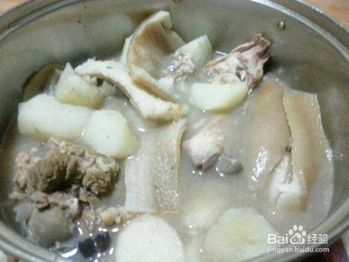 猪皮炖山药 原料:山药1根、猪皮适量、八角、桂皮、草果、姜片、盐、味精、酱油适量