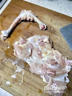 先把鸡腿去骨,不会去的,可以买的时候让卖家去好
