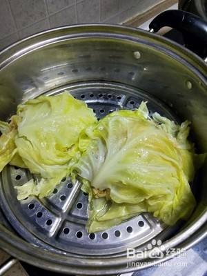 把包菜裹住 有东西系的可以系一下,我图省事,没弄