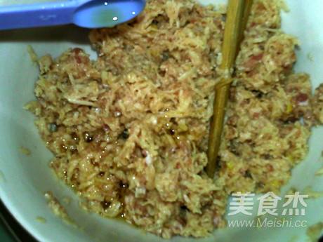 只有普通猪肉馅,肥瘦均有,应该比那瘦猪肉糜口感更好。只用了四分之一的酱油,略略带点酱色而已。而事实证明,这样的咸味已经足够。