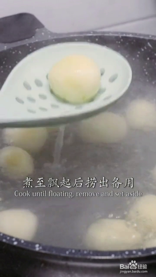 将土豆面团搓成一个个小土豆球,锅中烧水,水开放入土豆球,煮熟后捞出控水备用