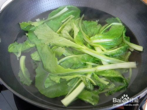 小白菜洗干净后,用开水迅速烫一下,千万不要时间长,水烧开,下入小白菜,过一下水,蔫了就捞出,捞出的白菜不用过凉,控去水分备用