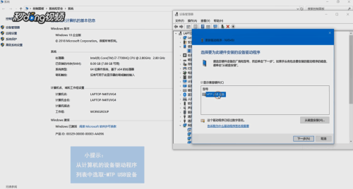 7在列表中选择“MTP USB 设备”,点击“下一步”。