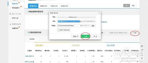 看到了这些词,你可以直接点击这个词 ,它会自动跳到淘宝/天猫进行搜索。你也可以点击右上角的下载按钮进行下载进行记录方便今后对比数据分析