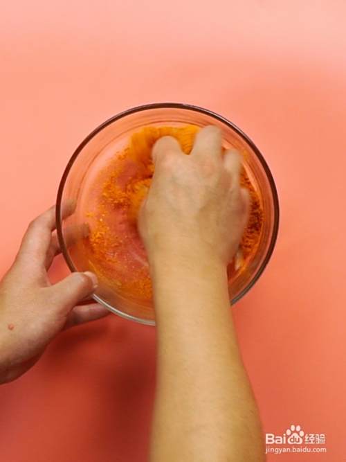 倒入奥尔良烧烤腌料30克、盐2克至鸡胸肉上,抓匀,腌制30分钟