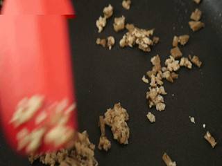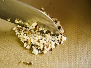 香菇放入开水中,大火,焯熟,捞出,切碎。
