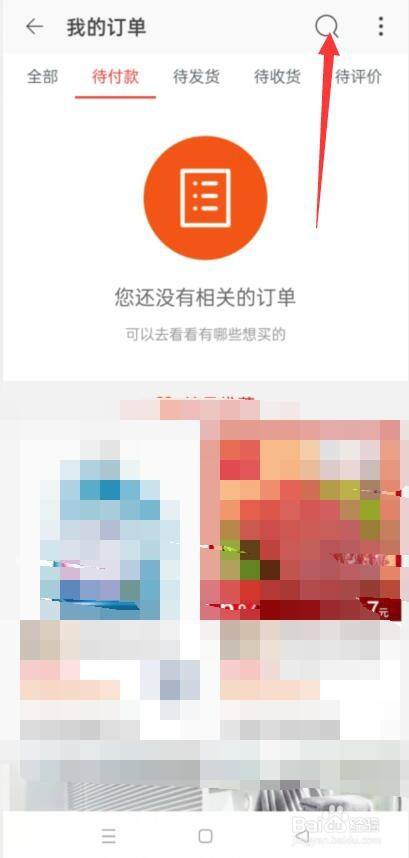 第四步进入到我的订单,选择搜索图标(如图)