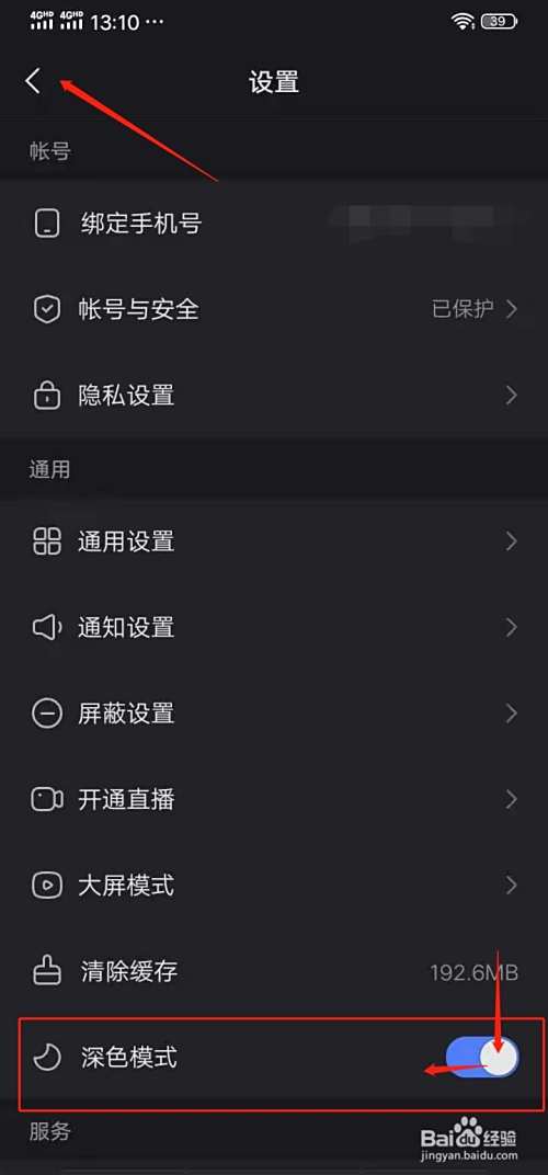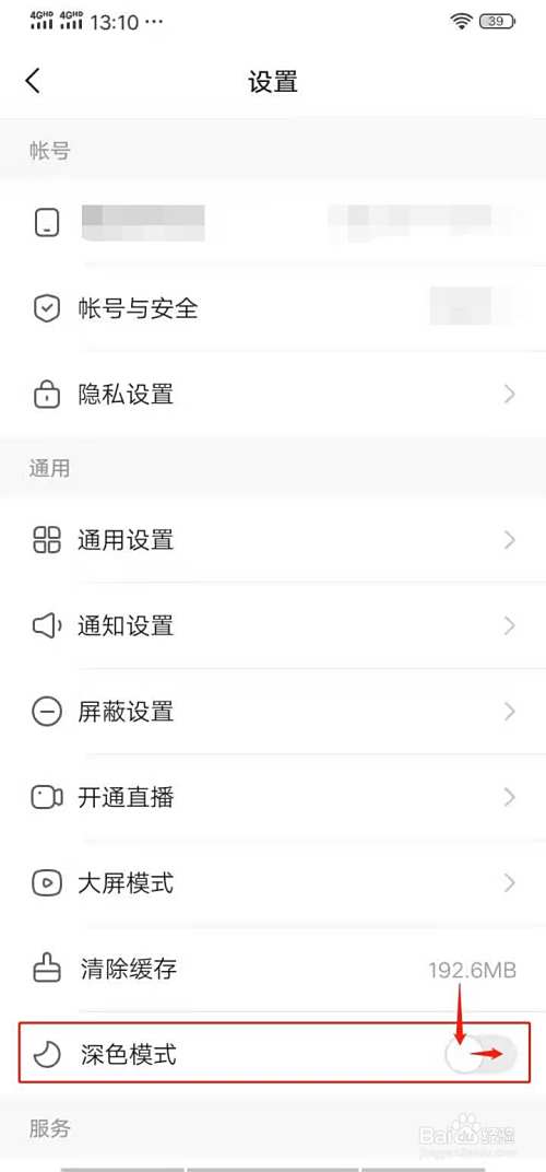 将【深色模式】的开关按钮向右侧拖动开启,即可切换至深色模式。