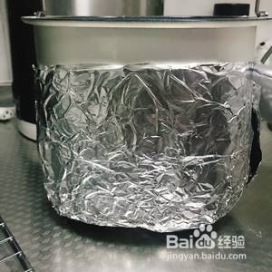 为避免单管加热导致面包皮太干硬,在面包桶外面包一圈锡纸~面包桶里的搅拌棒装好,别漏了这步